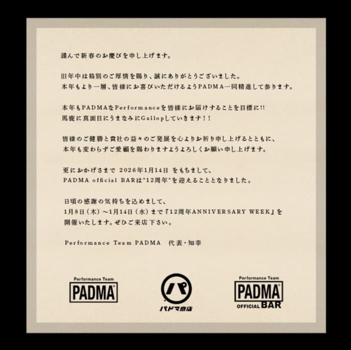 ★ PADMA official BARへのアクセス